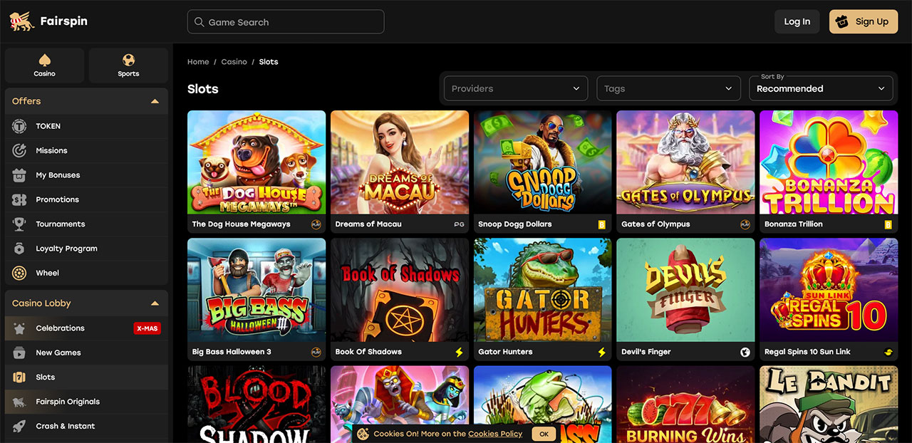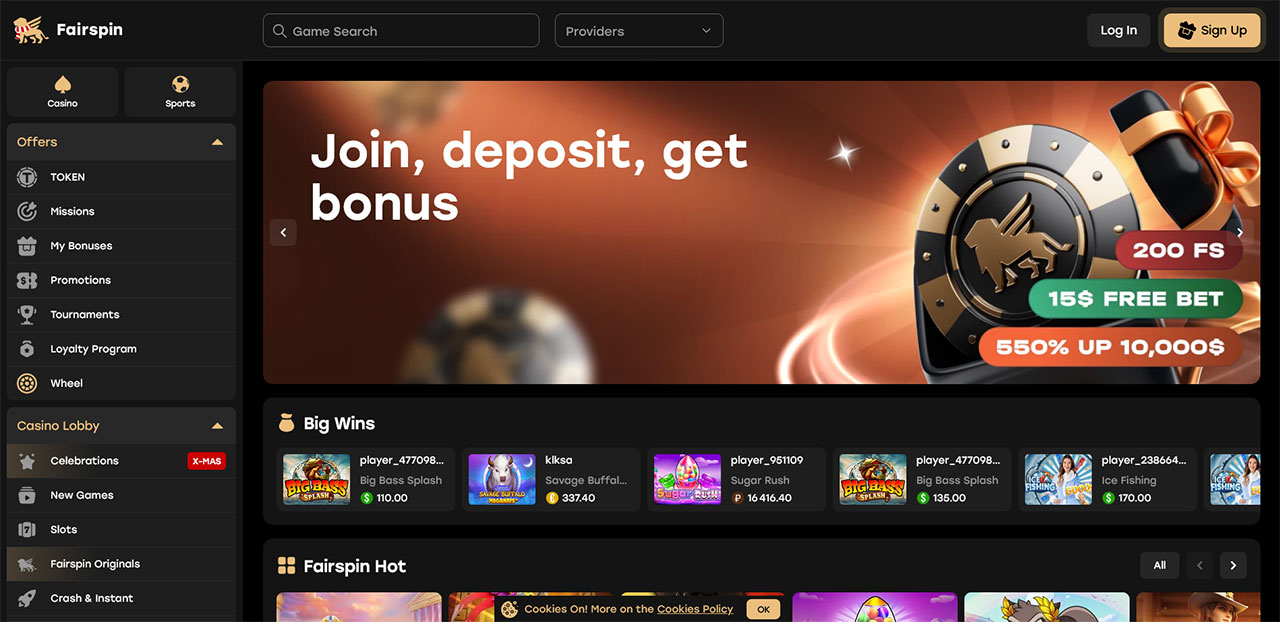 The casino has established cooperation with, among others, Spinomenal, NetEnt, Microgaming, Betsoft, iSoftBet, Play’n Go, Evolution Gaming, Pragmatic Play, Playson, PGSoft, Boongo and Endorphina. Developers enrich the catalog of games at Fairspin not only with popular video slots, but also table games, live casino games, video poker and lottery games.